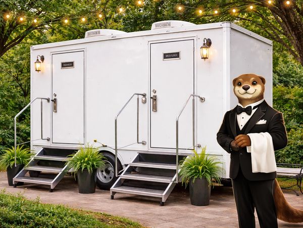 Our newest luxury 2-stall restroom trailer available for weddings, parties, showers, and private events.